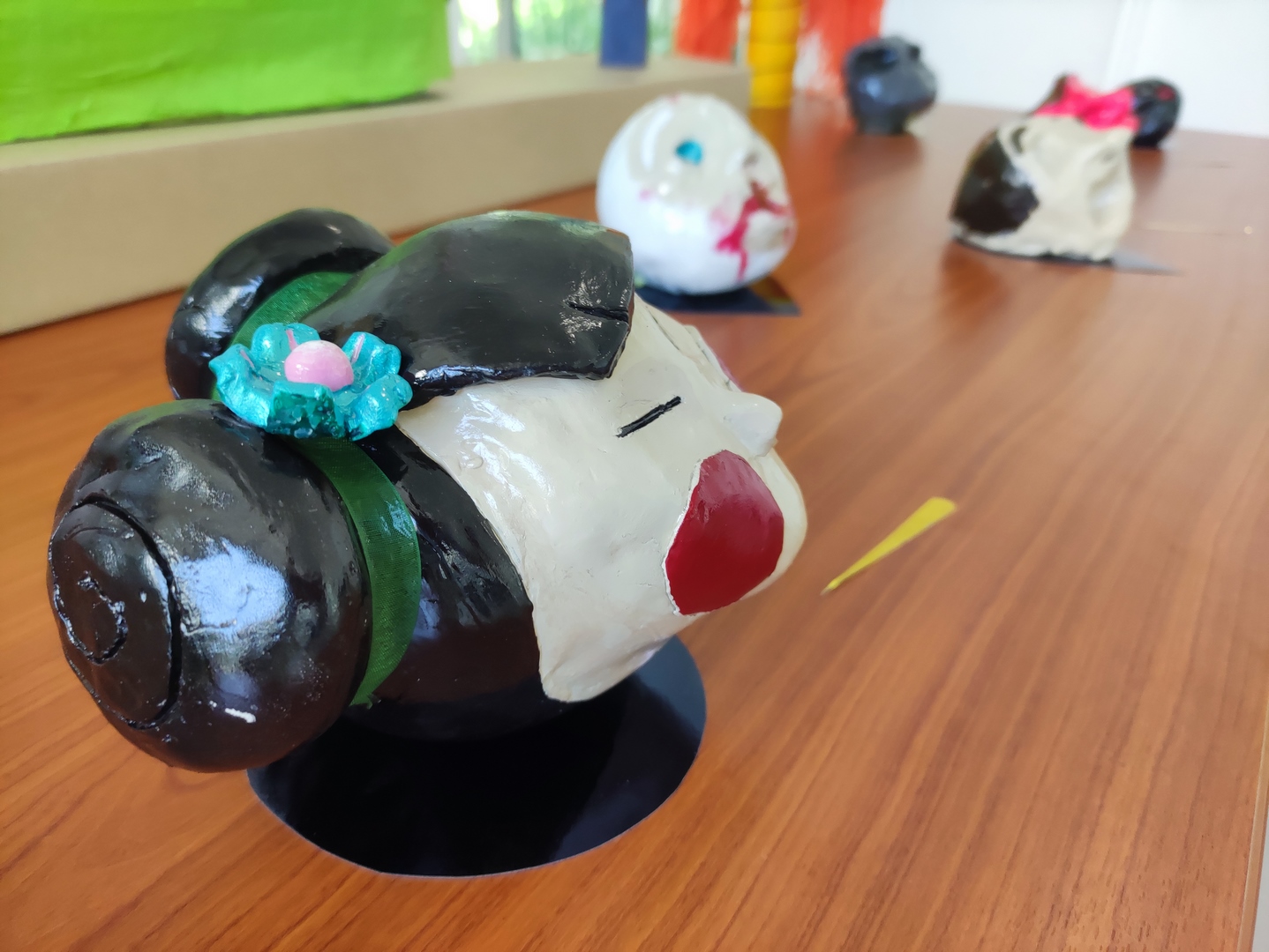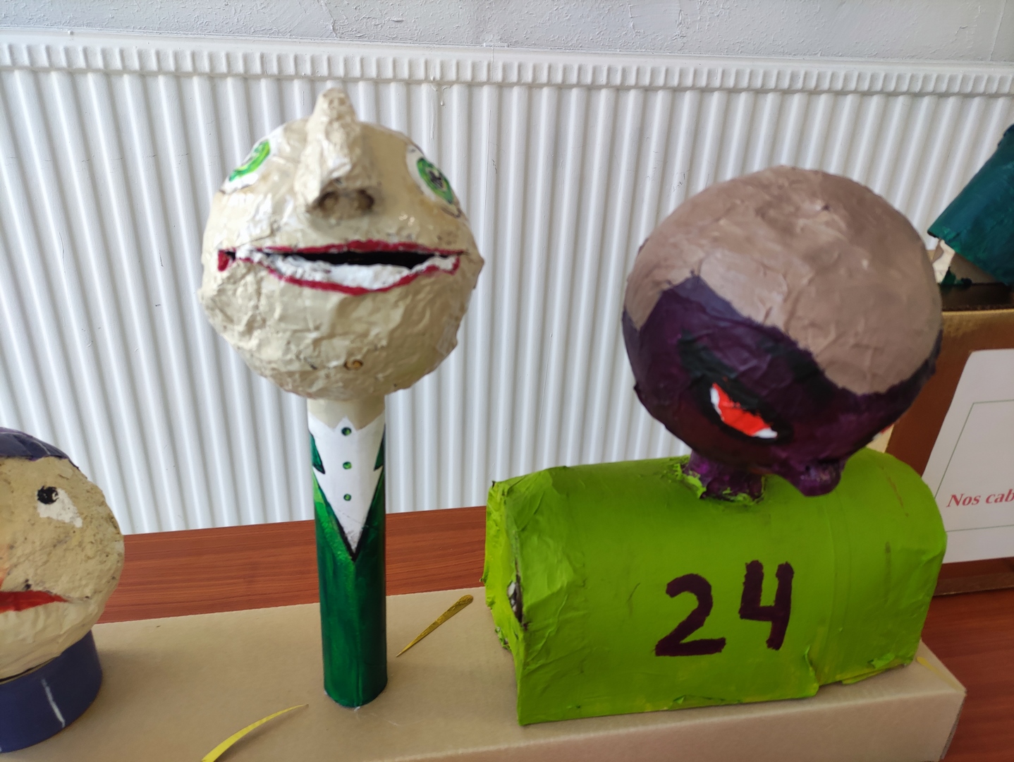 Atelier animé par Mme Rebout, professeur d'arts plastiques, autour d'un projet intitulé « Têtes de caboche ! ». Installation IN SITU des productions des élèves, création et exposition pour exposer : la gravure, la sculpture (terre, papier mâché, plâtre), la création d'images.